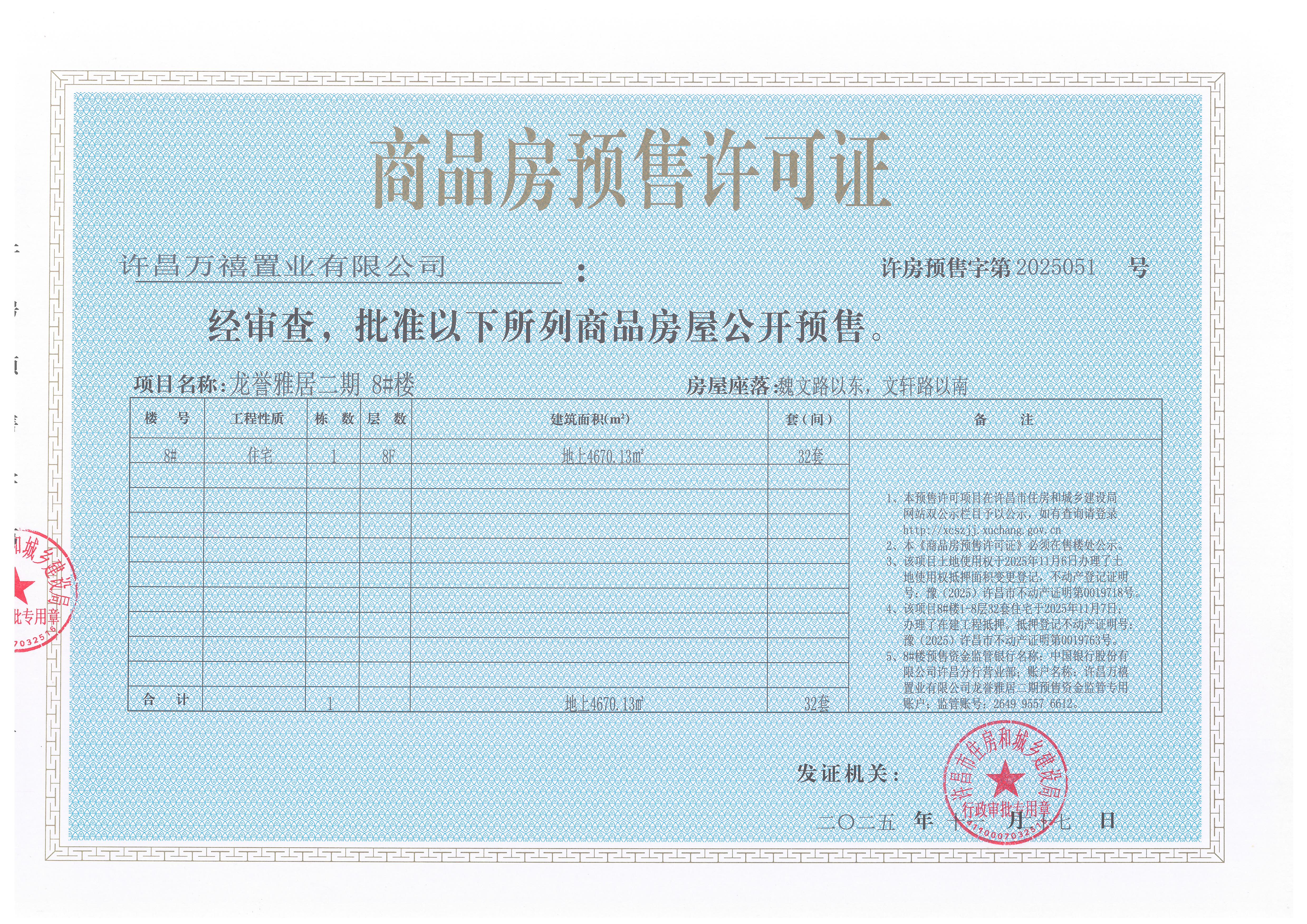 许房预售字第2025051号(许昌万禧置业有限公司)
