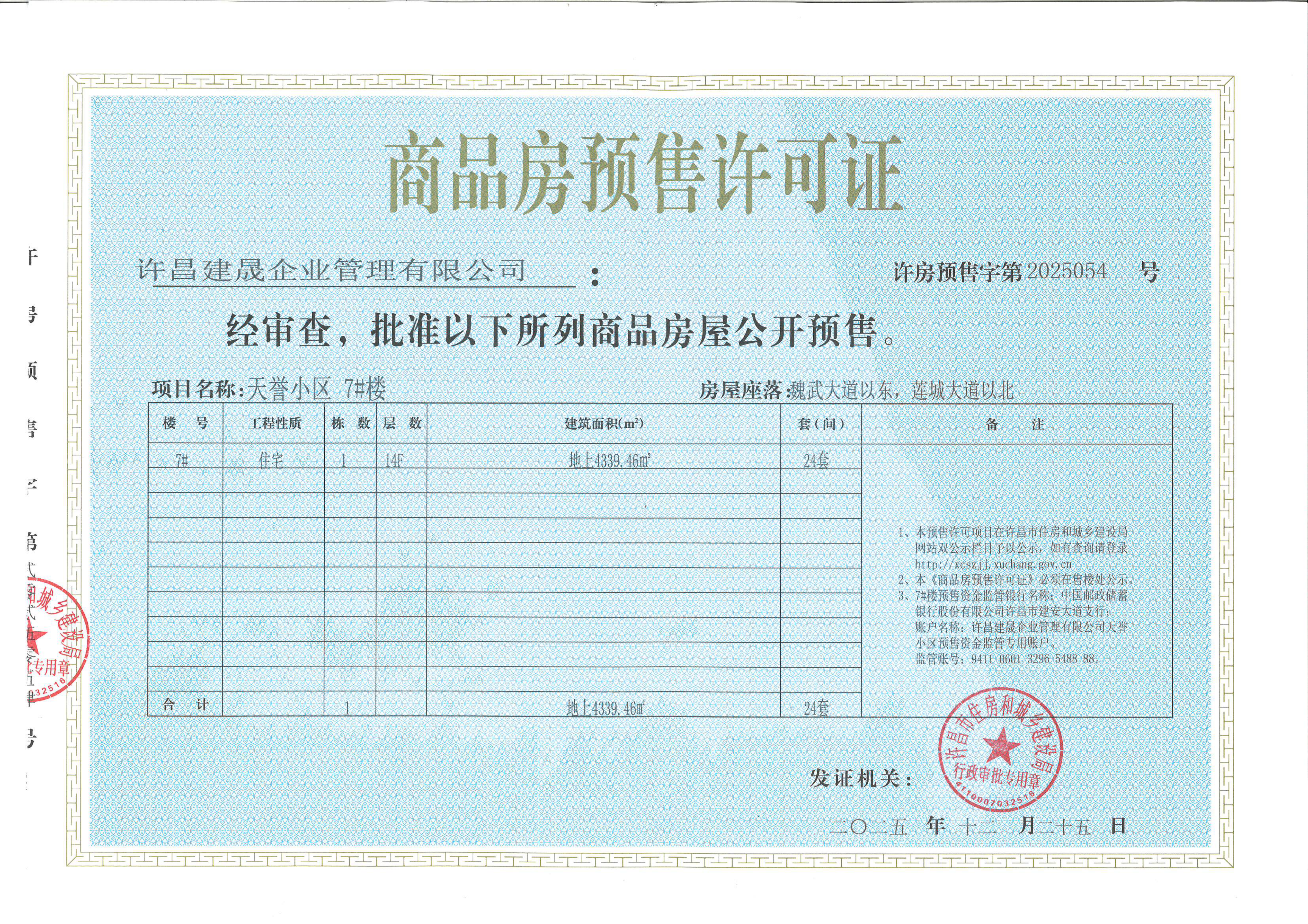 许房预售字第2025054(许昌建晟企业管理有限公司)