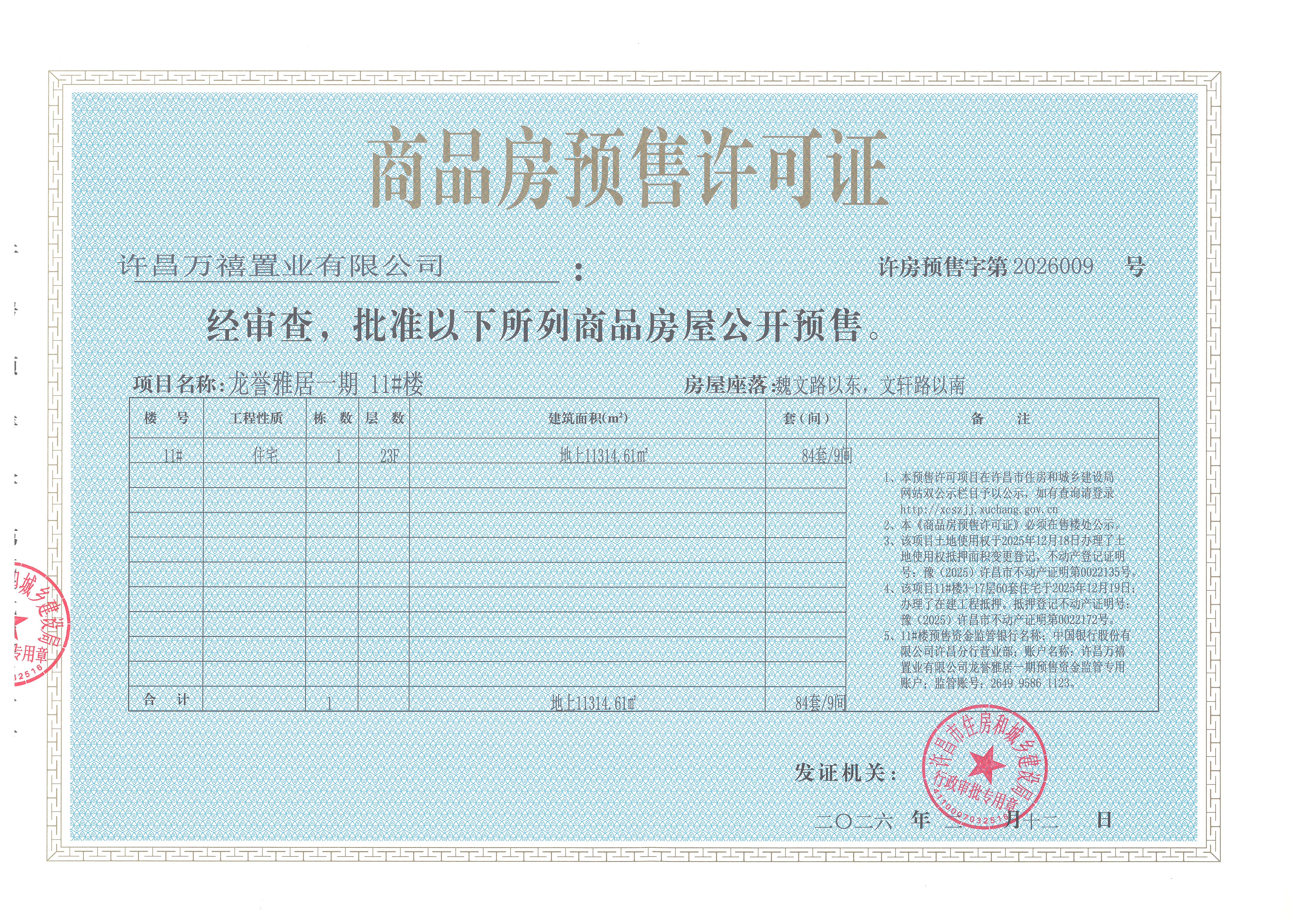 许房预售字第2026009号(许昌万禧置业有限公司)