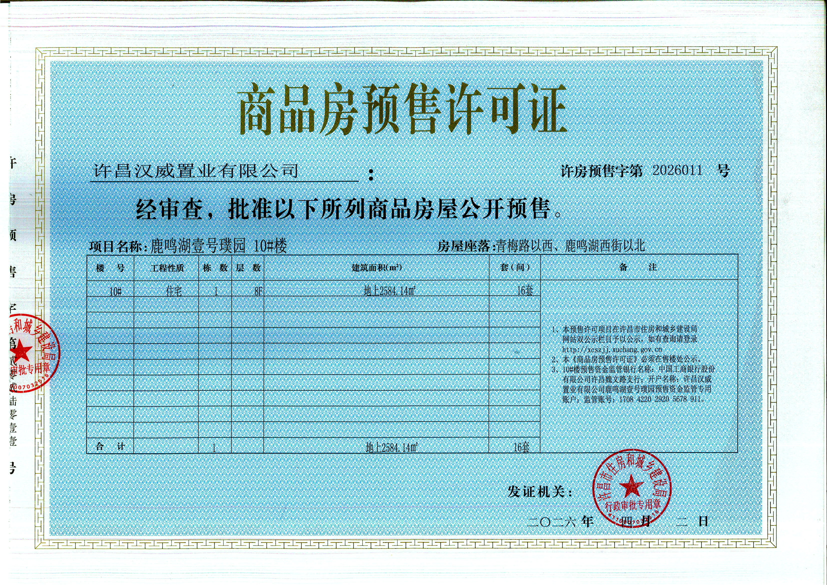 许房预售字第2026011号(许昌汉威置业有限公司)