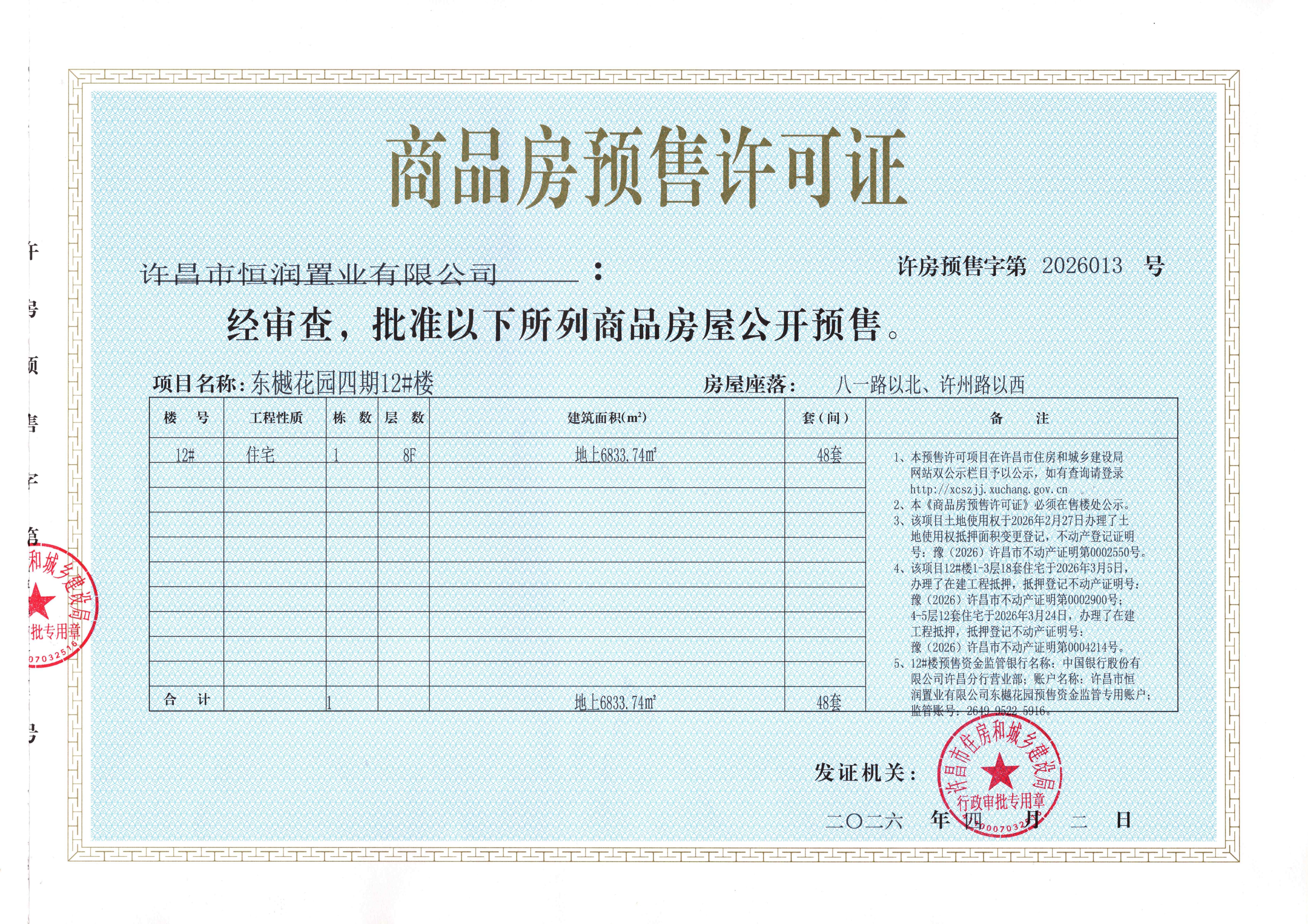 许房预售字第2026013号(许昌市恒润置业有限公司)
